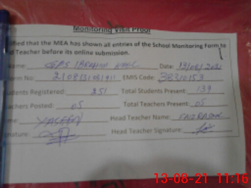| EMIS Code: 38310153 | Name of School: GPS IBRAHIM KHEL PO TRAGH ISA KHEL MIANWALI | |||