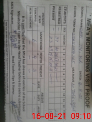 | Attendance Register | Head Teacher | MEA with School | Visit Proof |