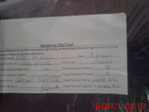 | Certified that this School was Inspected by the Undersigned MEA/DMO Today and the Information Stated Above is as Per Record. | |||||