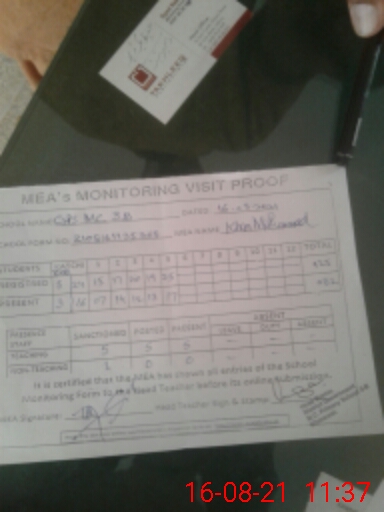 | Certified that this School was Inspected by the Undersigned MEA/DMO Today and the Information Stated Above is as Per Record. | |||||