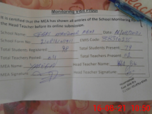 | EMIS Code: 38310235 | Name of School: GGPS MANZOOR ABAD ISA KHEL | |||