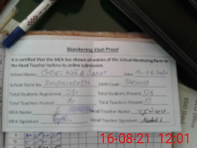 | Attendance Register | Head Teacher | MEA with School | Visit Proof |