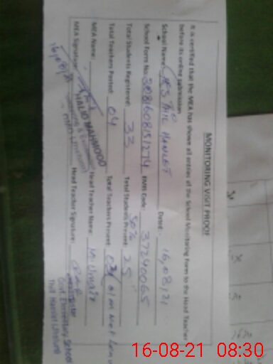 | Certified that this School was Inspected by the Undersigned MEA/DMO Today and the Information Stated Above is as Per Record. | |||||