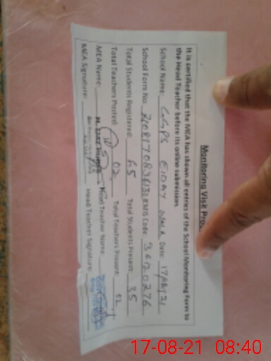 | Certified that this School was Inspected by the Undersigned MEA/DMO Today and the Information Stated Above is as Per Record. | |||||