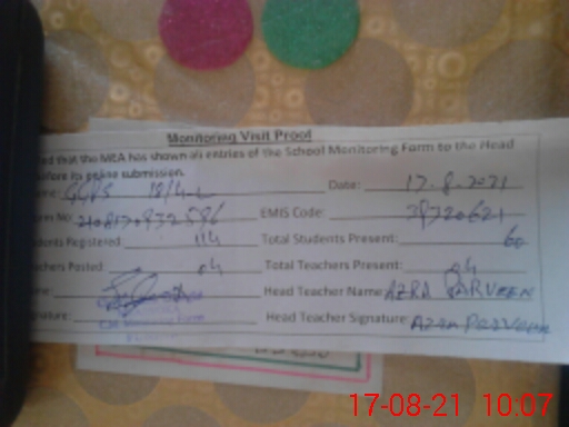 | Certified that this School was Inspected by the Undersigned MEA/DMO Today and the Information Stated Above is as Per Record. | |||||
