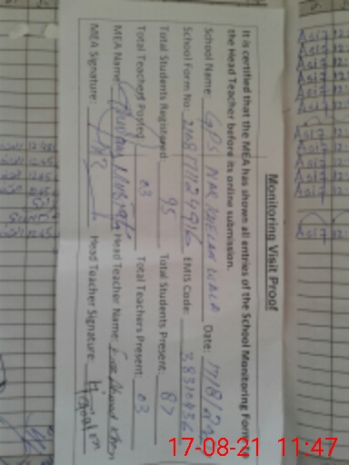 | Attendance Register | Head Teacher | MEA with School | Visit Proof |