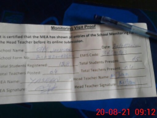 | EMIS Code: 38310143 | Name of School: GPS JANJWANI | |||