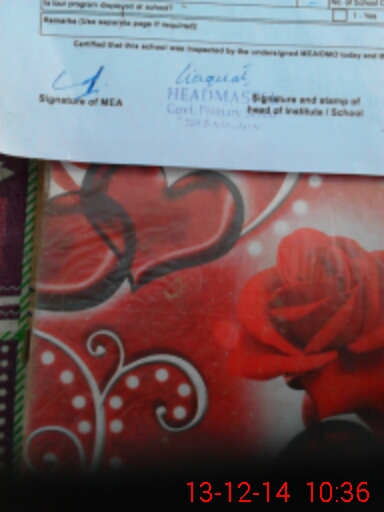 | Certified that this School was Inspected by the Undersigned MEA/DMO Today and the Information Stated Above is as Per Record. | |||||