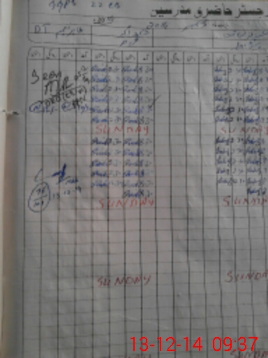 | CNIC | Full Name | Designation | R/C | Absence During Last Calender Month |