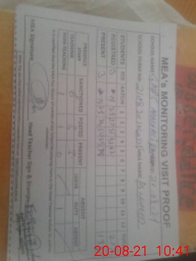 | Certified that this School was Inspected by the Undersigned MEA/DMO Today and the Information Stated Above is as Per Record. | |||||