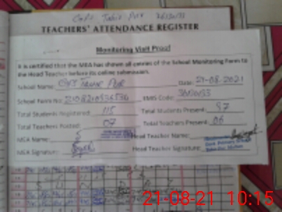 | Attendance Register | Head Teacher | MEA with School | Visit Proof |