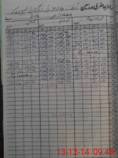 | CNIC | Full Name | Designation | R/C | Absence During Last Calender Month |