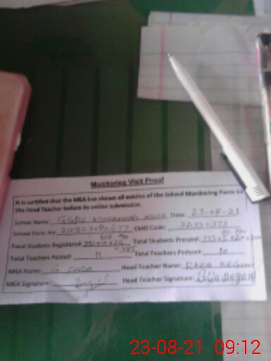 | Attendance Register | Head Teacher | MEA with School | Visit Proof |