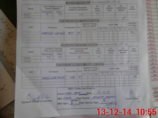 | Attendance Register | Head Teacher | MEA with School | Visit Proof |