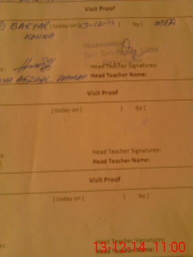 | Attendance Register | Head Teacher | MEA with School | Visit Proof |