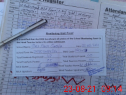 | Attendance Register | Head Teacher | MEA with School | Visit Proof |