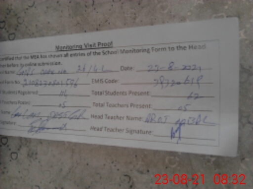 | Attendance Register | Head Teacher | MEA with School | Visit Proof |
