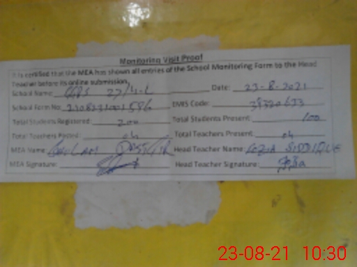 | Certified that this School was Inspected by the Undersigned MEA/DMO Today and the Information Stated Above is as Per Record. | |||||