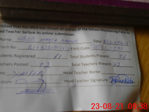 | Attendance Register | Head Teacher | MEA with School | Visit Proof |