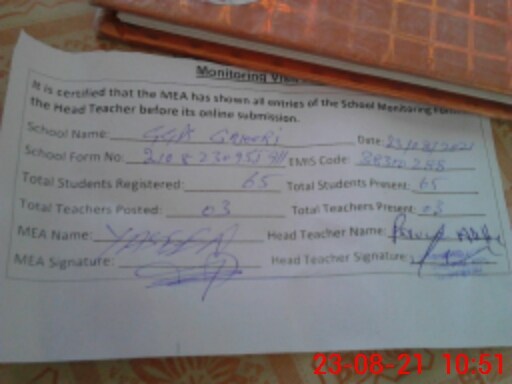 | EMIS Code: 38310288 | Name of School: GGPS GAJOORI | |||