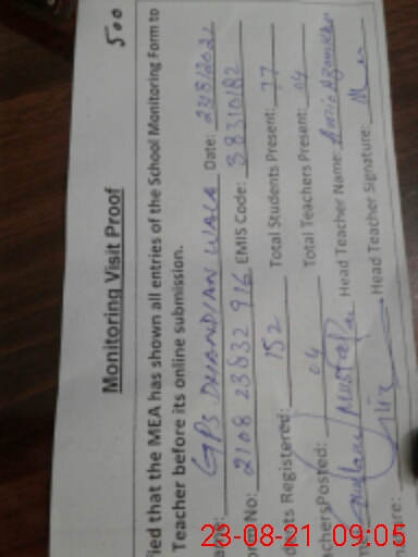 | EMIS Code: 38310182 | Name of School: GPS DHANDIAN WALA | |||
