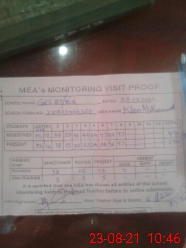 | EMIS Code: 36420066 | Name of School: GES 87/10-R, KHANEWAL | |||