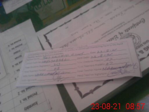 | Attendance Register | Head Teacher | MEA with School | Visit Proof |
