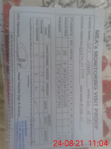 | Attendance Register | Head Teacher | MEA with School | Visit Proof |