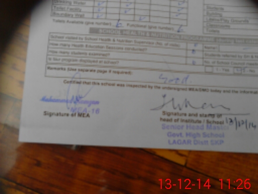 | Certified that this School was Inspected by the Undersigned MEA/DMO Today and the Information Stated Above is as Per Record. | |||||