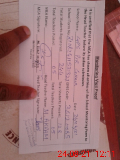 | Name: MU**** Ak**** Designation: (School Headmaster's/Headmistress's) PST Phone/Cell Number: 03**** |