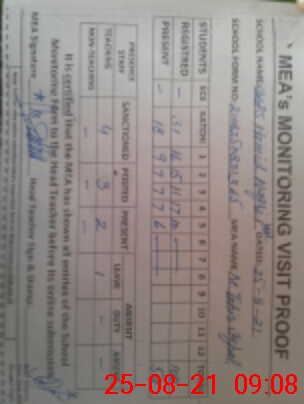 | Monitoring Date: 25-08-2021 | Start Time: 25-08-2021 08:31 AM | End Time: 25-08-2021 09:11 AM | Name of MEA: M.Ta**** Iq**** (S**** | |