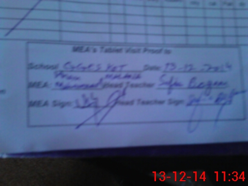 | Attendance Register | Head Teacher | MEA with School | Visit Proof |