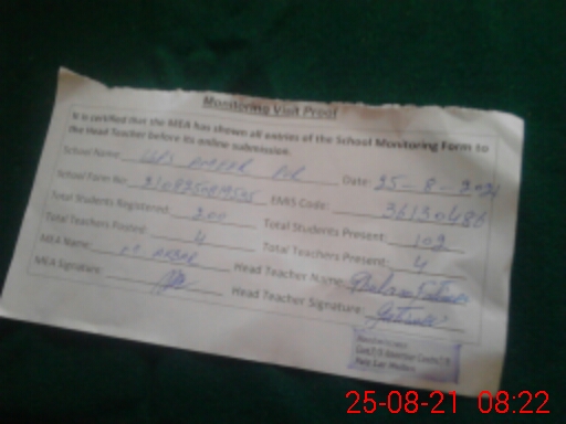 | Attendance Register | Head Teacher | MEA with School | Visit Proof |