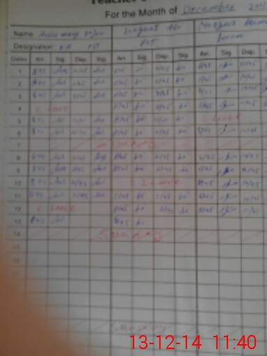 | Monitoring Date: 13-12-2014 | Start Time: 13-12-2014 10:59 AM | End Time: 13-12-2014 11:43 AM | Name of MEA: Mu**** Ah**** | |