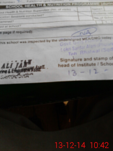 | Certified that this School was Inspected by the Undersigned MEA/DMO Today and the Information Stated Above is as Per Record. | |||||