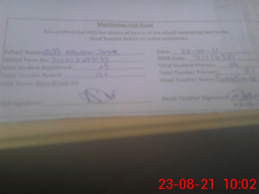| Certified that this School was Inspected by the Undersigned MEA/DMO Today and the Information Stated Above is as Per Record. | |||||
