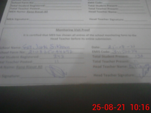 | Certified that this School was Inspected by the Undersigned MEA/DMO Today and the Information Stated Above is as Per Record. | |||||