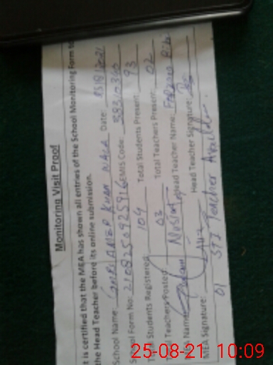 | Certified that this School was Inspected by the Undersigned MEA/DMO Today and the Information Stated Above is as Per Record. | |||||