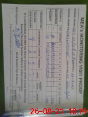| Certified that this School was Inspected by the Undersigned MEA/DMO Today and the Information Stated Above is as Per Record. | |||||
