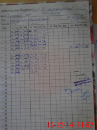 | CNIC | Full Name | Designation | R/C | Absence During Last Calender Month |