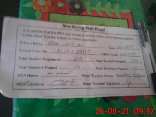| Certified that this School was Inspected by the Undersigned MEA/DMO Today and the Information Stated Above is as Per Record. | |||||