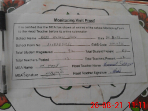 | Certified that this School was Inspected by the Undersigned MEA/DMO Today and the Information Stated Above is as Per Record. | |||||