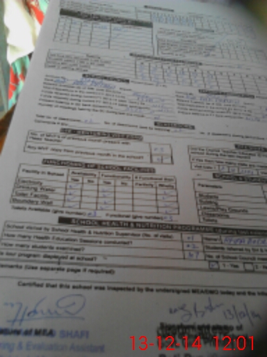 | School Visited by School Health & Nutrition Supervisor (No. of Visits) | 1 | Name1: | Afifa Bodla | Name2: | O |