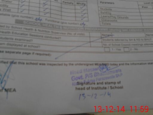 | Certified that this School was Inspected by the Undersigned MEA/DMO Today and the Information Stated Above is as Per Record. | |||||