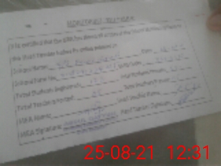 | Monitoring Date: 25-08-2021 | Start Time: 25-08-2021 12:04 PM | End Time: 25-08-2021 12:33 PM | Name of MEA: HA**** AB**** QA**** | |