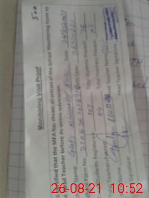 | Certified that this School was Inspected by the Undersigned MEA/DMO Today and the Information Stated Above is as Per Record. | |||||