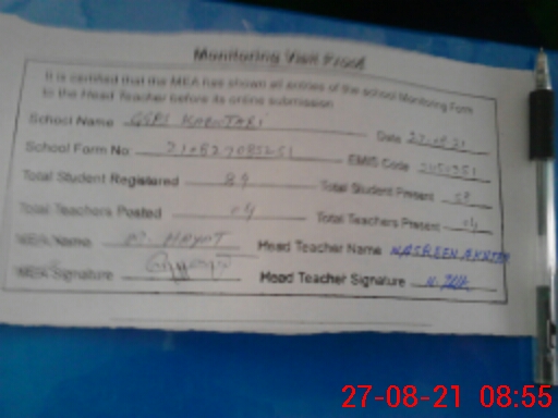 | EMIS Code: 31150351 | Name of School: GGPS KABOOTRI NO. 1 | |||