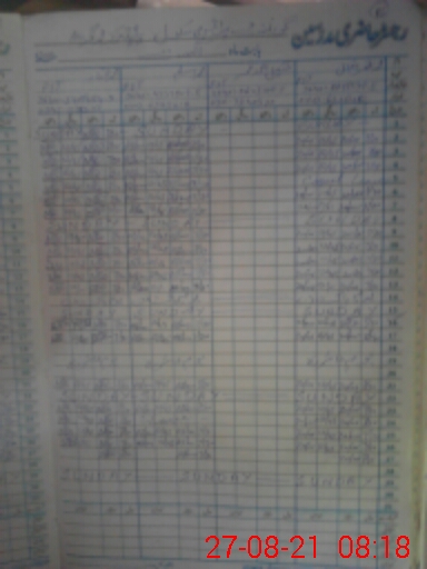 | CNIC | Full Name | Designation | R/C | Absence During Last Calender Month |