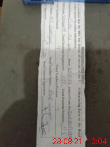 | Monitoring Date: 28-08-2021 | Start Time: 28-08-2021 09:30 AM | End Time: 28-08-2021 10:15 AM | Name of MEA: MU**** SI**** | |