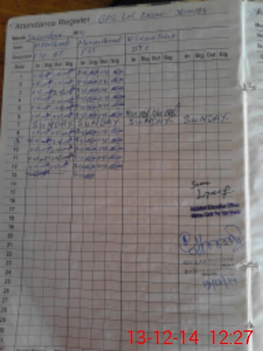 | CNIC | Full Name | Designation | R/C | Absence During Last Calender Month |